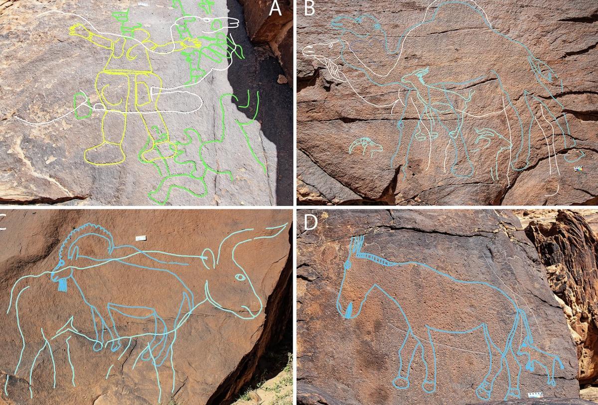 Отмечается, что ученые обследовали три ранее неисследованные скалы, а именно Джебель-Арнаан, Джебель-Млейха и Джебель-Мисма - вдоль южного края пустыни Нефуд. Они обнаружили более 60 панелей с наскальным искусством, на которых было изображено 176 фигур животных.