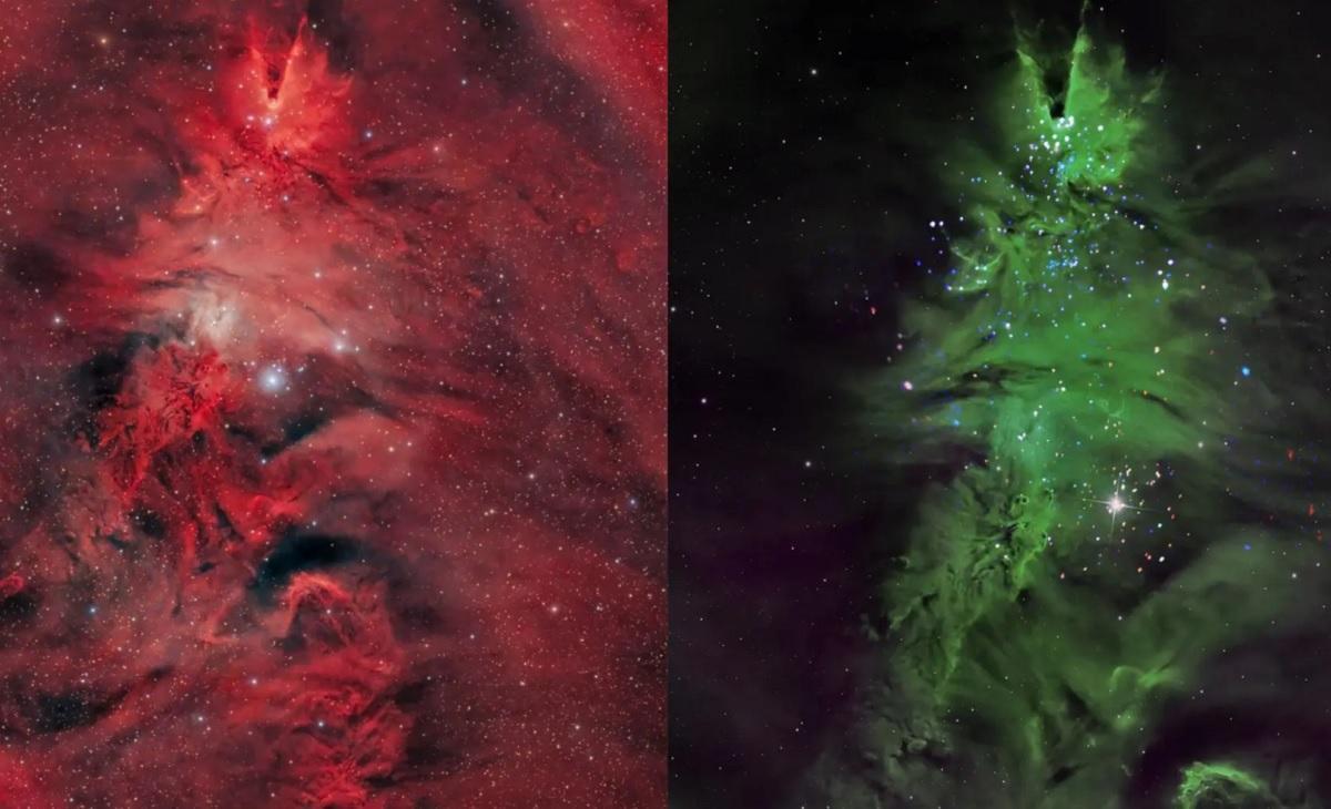 Впрочем, пыль не только поглощает свет. Вблизи горячих звезд она рассеивает голубые волны, формируя так называемые отражательные туманности. Именно сочетание красного и голубого сияния придает Космической елке многослойный, почти праздничный вид.