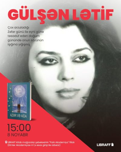 8 ноября в филиале «Park Academy» сети книжных магазинов LIBRAFF состоялся день памяти Гюльшан Лятиф – заслуженного деятеля культуры, всегда жившей вдали от родной Шуши и Азербайджана, тоской по Родине и стремлением к Победе, члена Союза писателей Азербайджана и Союза писателей и сценаристов Нидерландов.