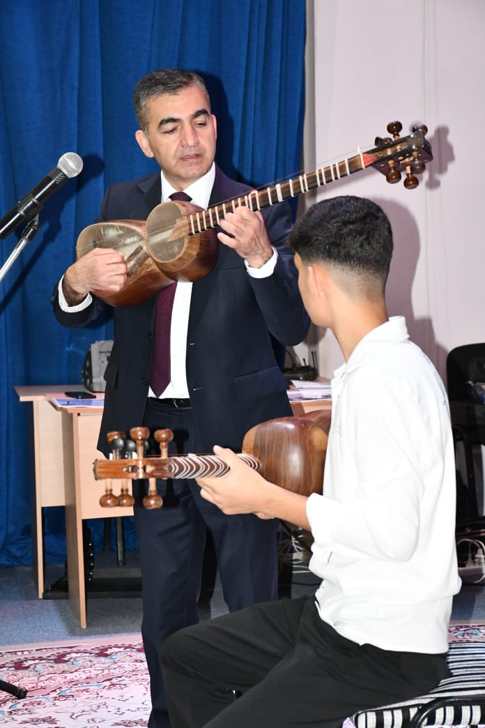 Мастер-классы по игре на таре провел заведующий сектором MEMIM, заслуженный артист Неймат Мурсалов. Тарист рассказал, что цель мастер-классов-развитие знаний и навыков учащихся по соответствующей специальности, повышение профессионализма преподавателей, оказание им методической помощи.