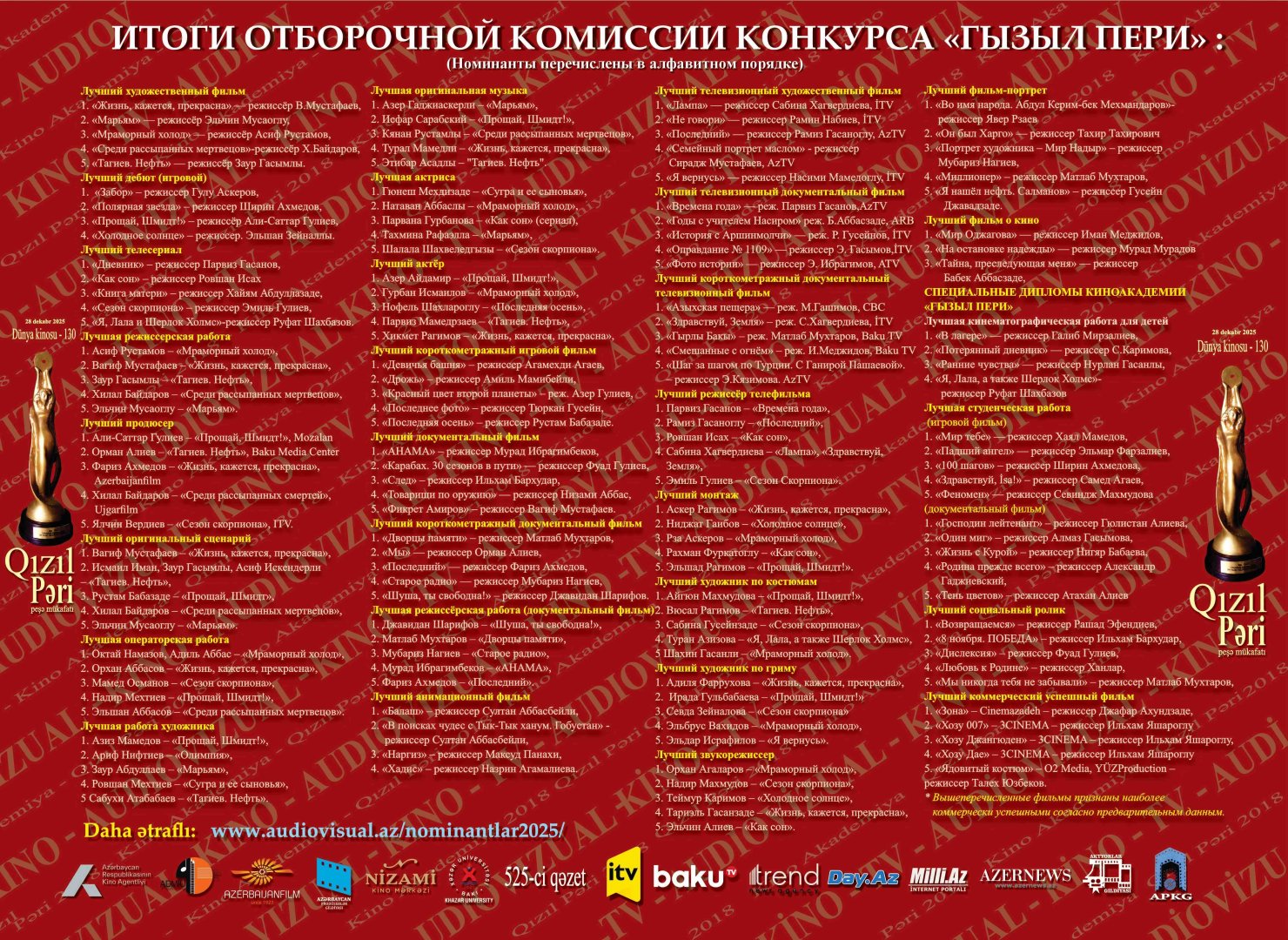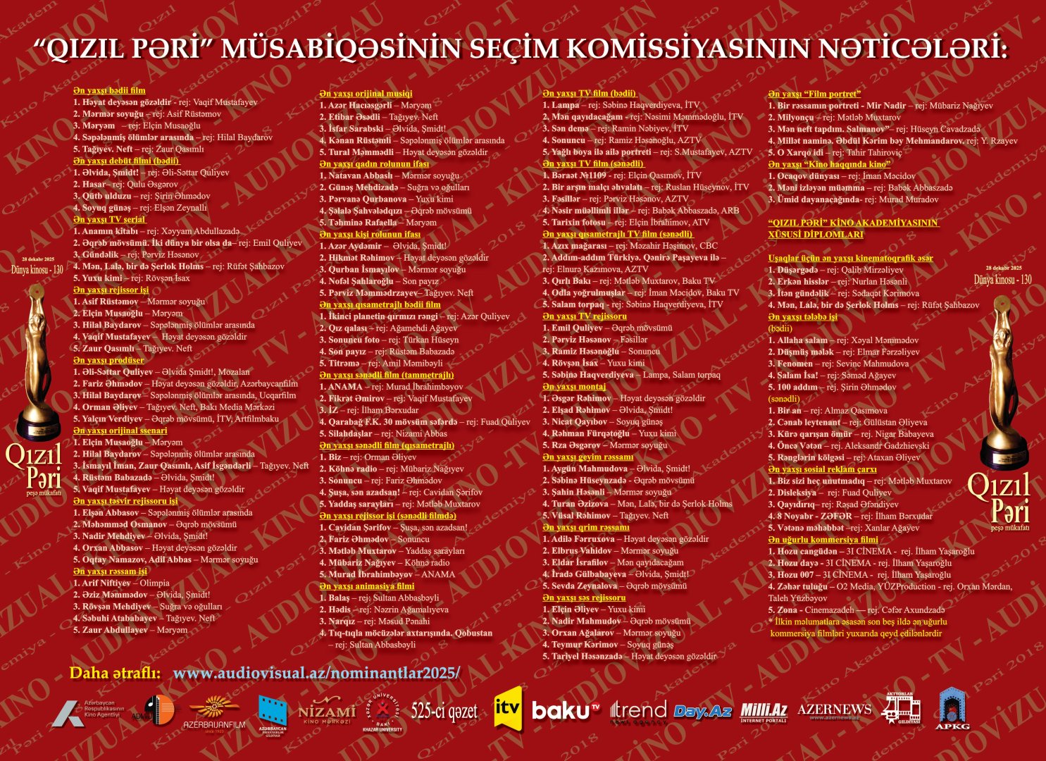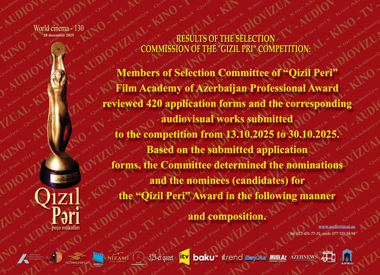 Члены отборочной комиссии Qızıl Pəri в период с 13.10.2025 по 30.10.2025 рассмотрели 420 заявок, поданных на конкурс и кинематографические работы к ним и определили номинантов (кандидатов) на соискание премии в следующем порядке (все номинанты перечислены в алфавитном порядке):