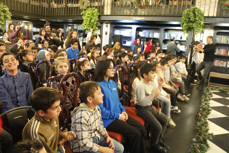 На мероприятие были приглашены воспитанники школы-интерната санаторного типа номер 10. Сотрудники Бакинского книжного центра организовали для детей краткую ознакомительную экскурсию. Затем по инициативе Общественного объединения «Региональное развитие» и Центра детско-юношеского развития номер 2 для детей были проведены познавательные и интерактивные мастер-классы, а также «Час чтения» на новогоднюю тематику.