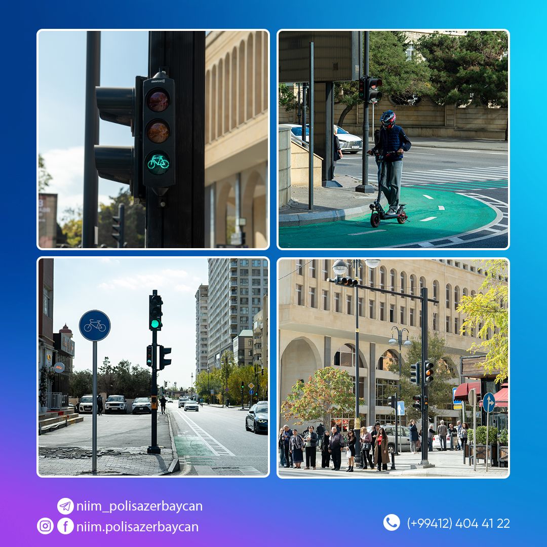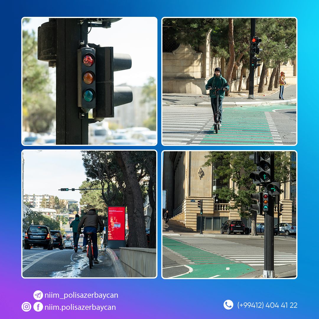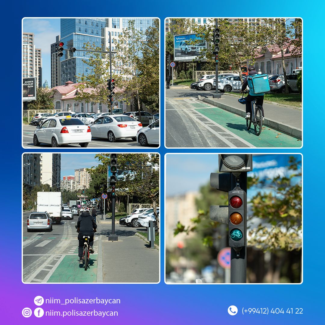 В Баку на ряде перекрестков установлены светофоры с секциями для велосипедов ФОТО