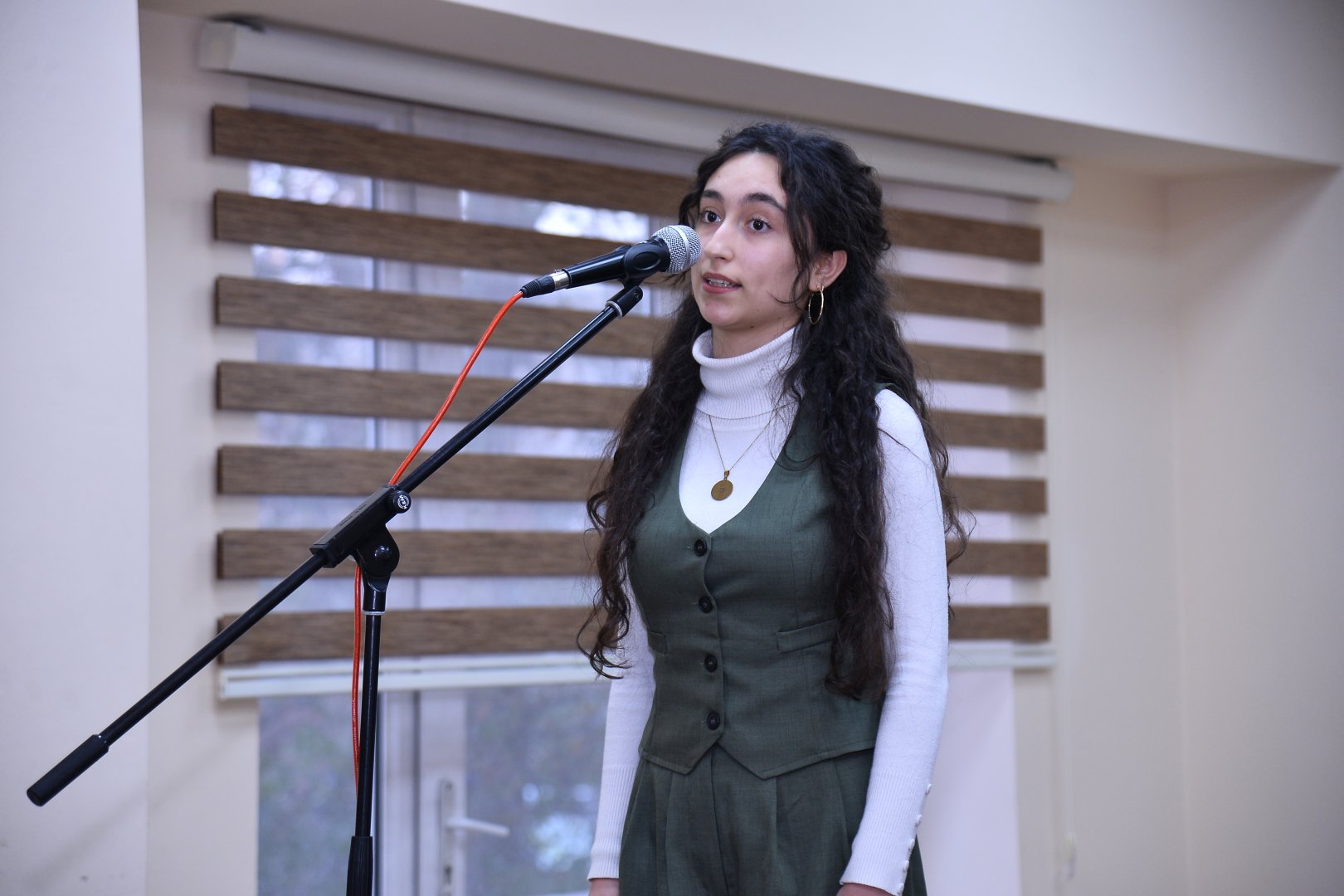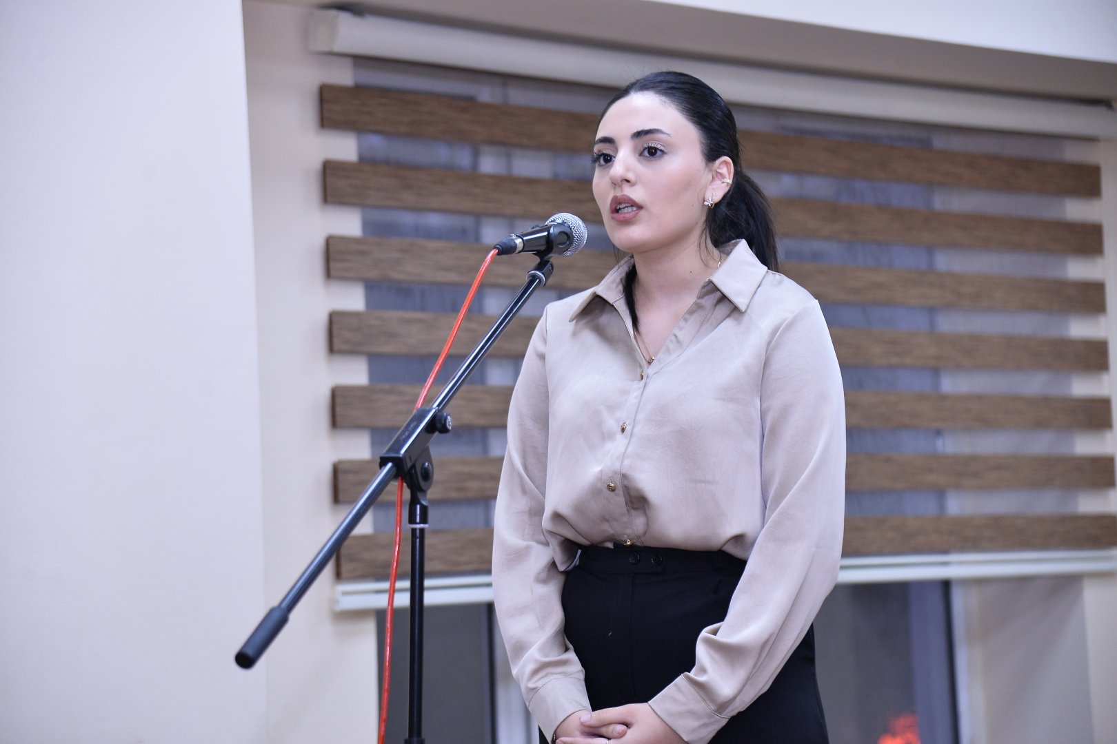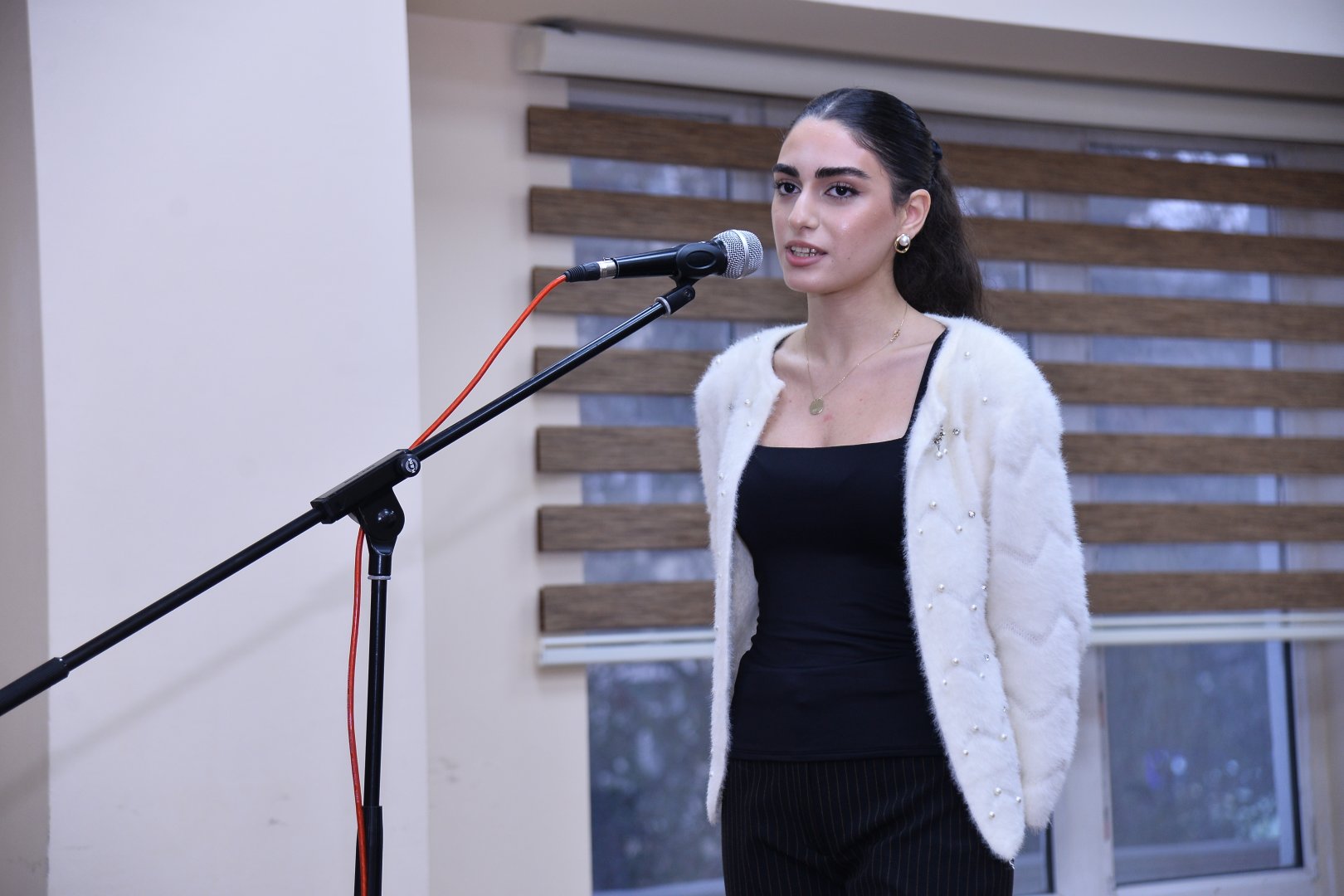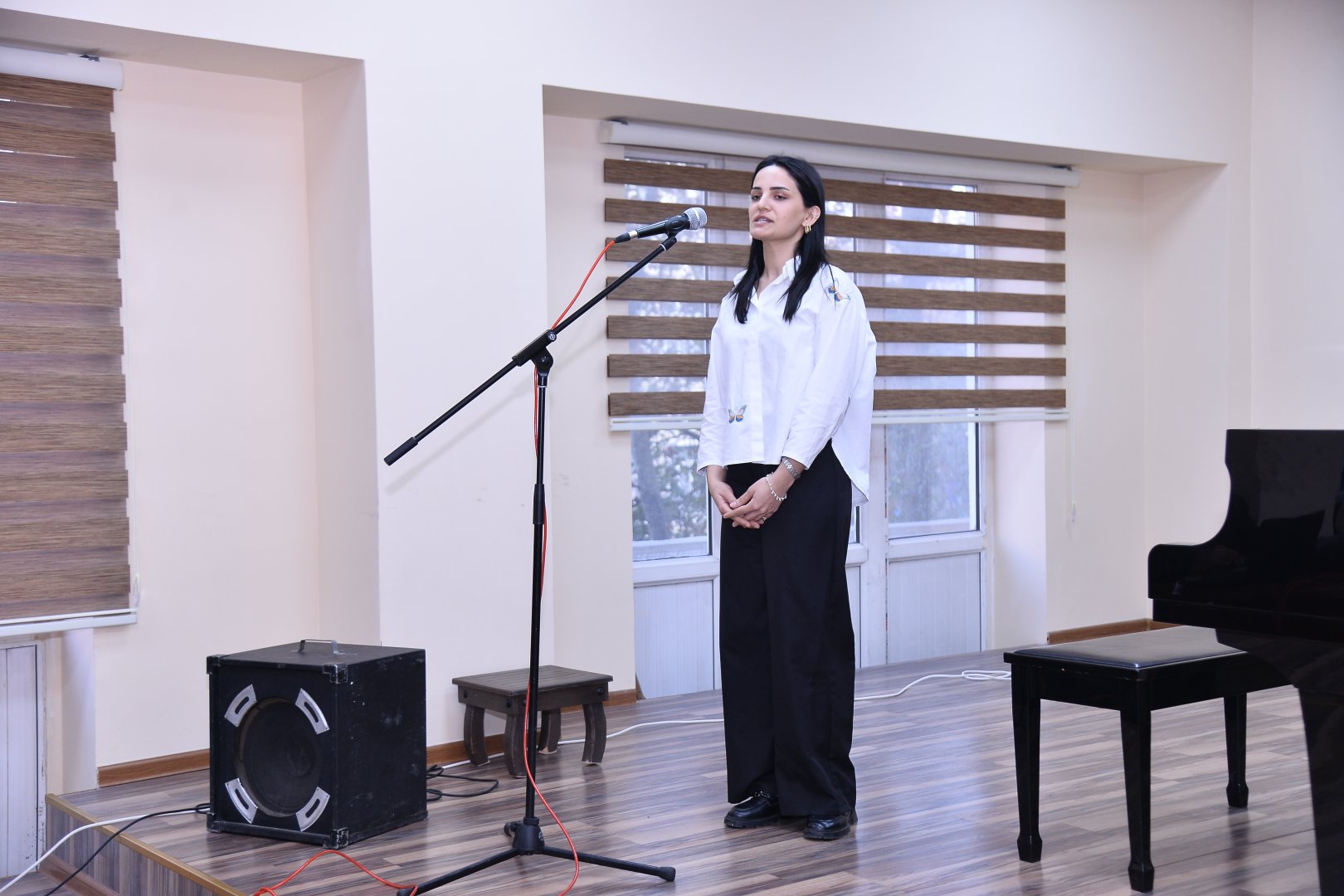 Об интересных фактах из жизни и творчества юбиляра собравшимся зрителям рассказали студенты историко-теоретического факультета - Пакиза Мустафазаде, Аминаханум Мамедова, Рагима Гамидова, Аян Иманлы, Гюльджан Ахмедова, Ханум Годжаева, Валида Гаджиева, Лейла Салимова, Севда Мовсумлу.