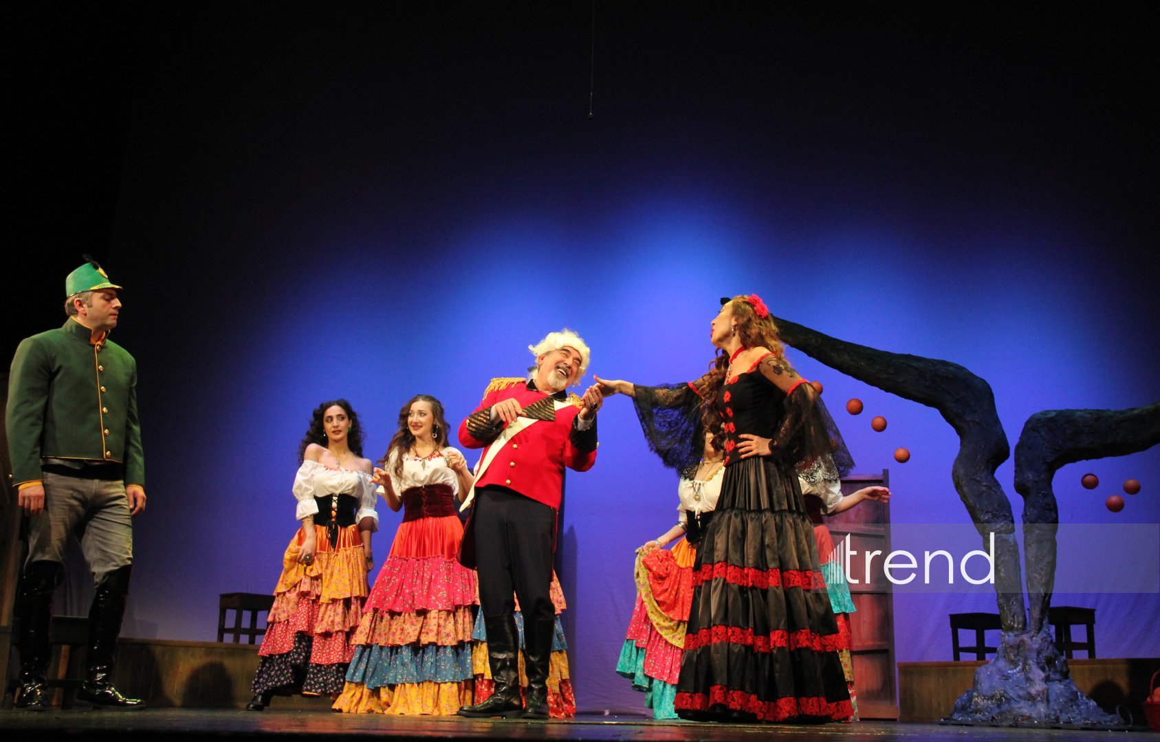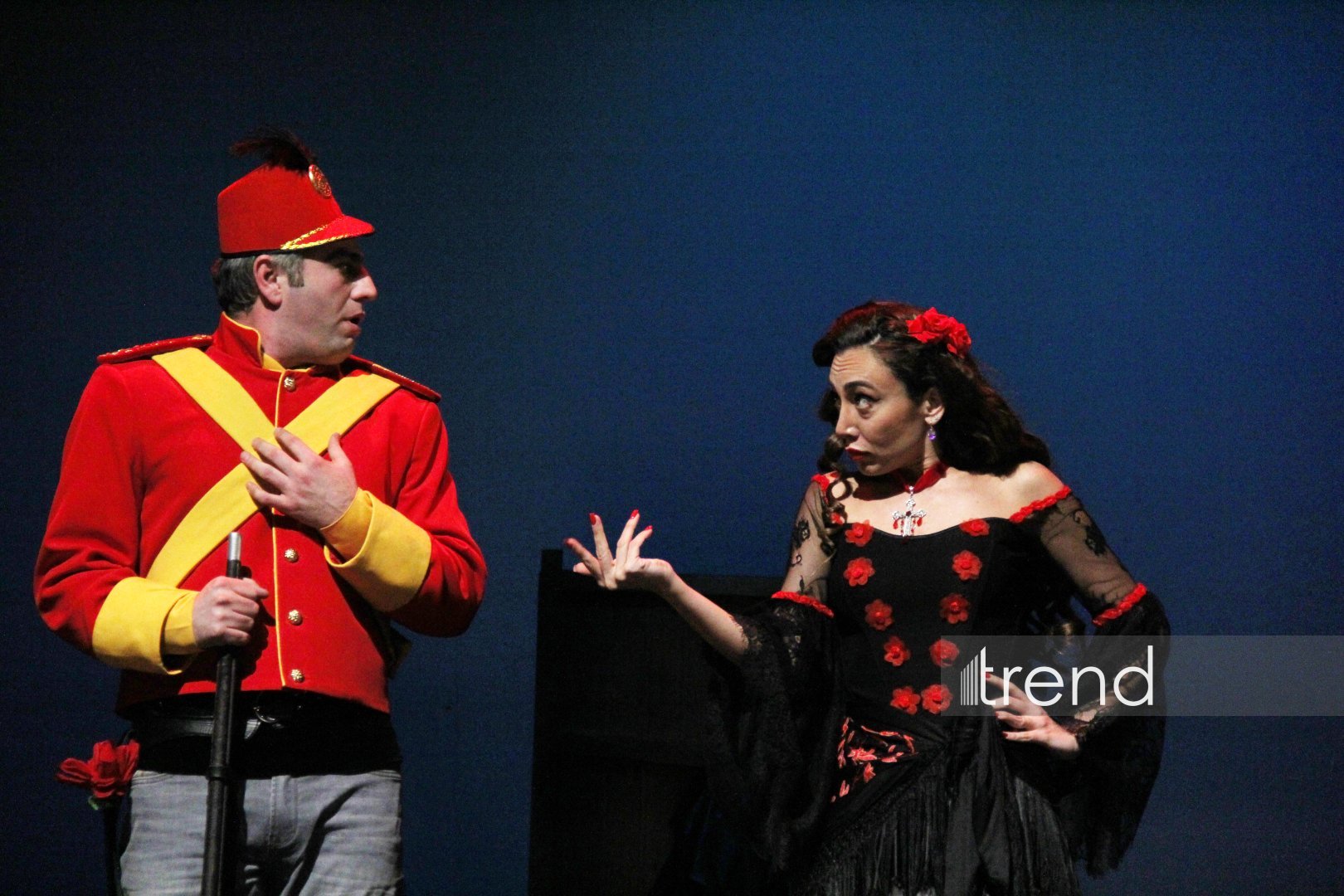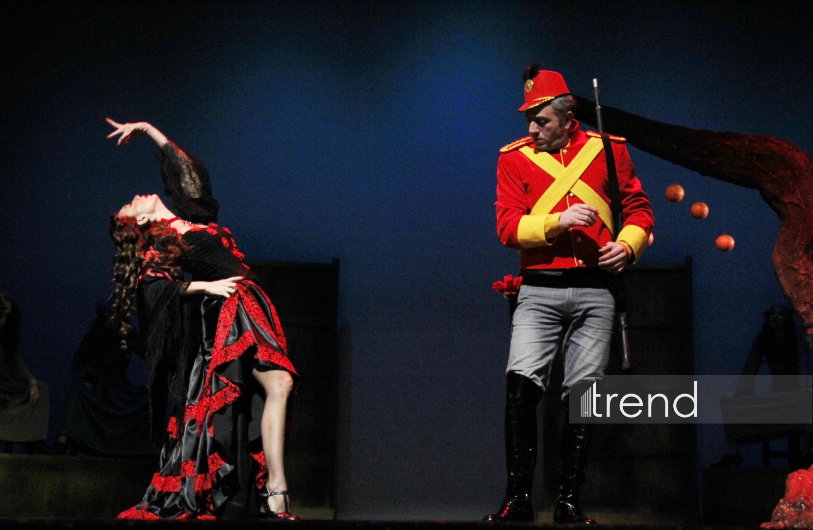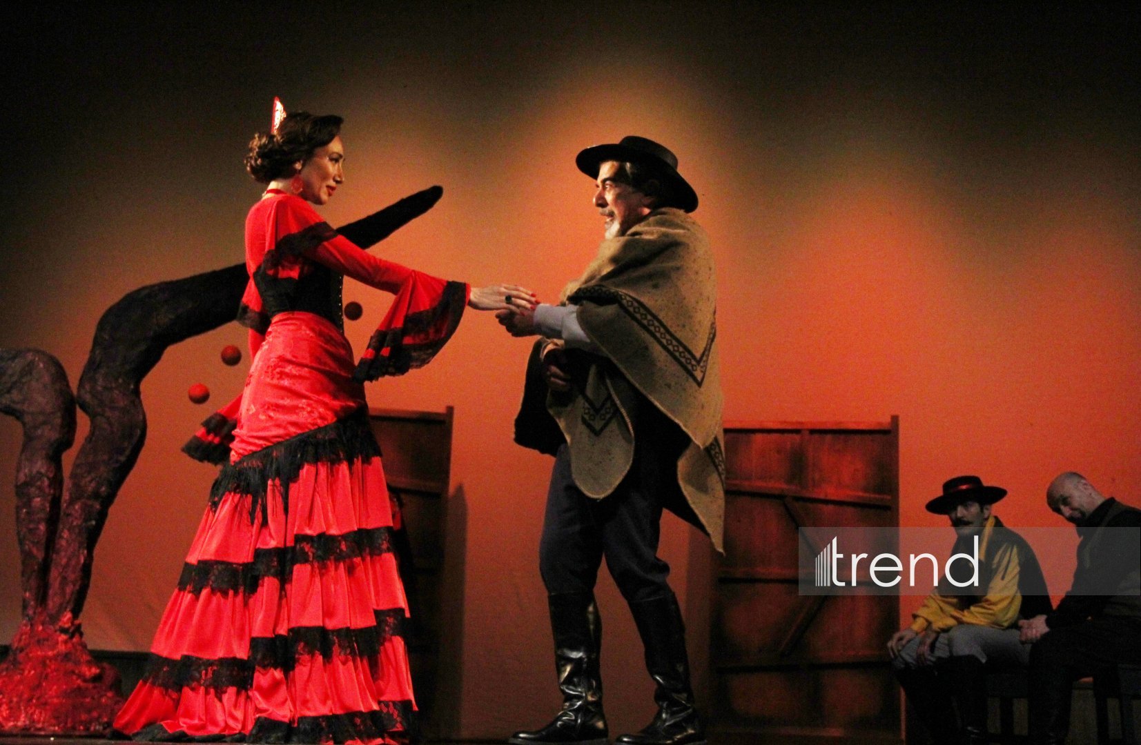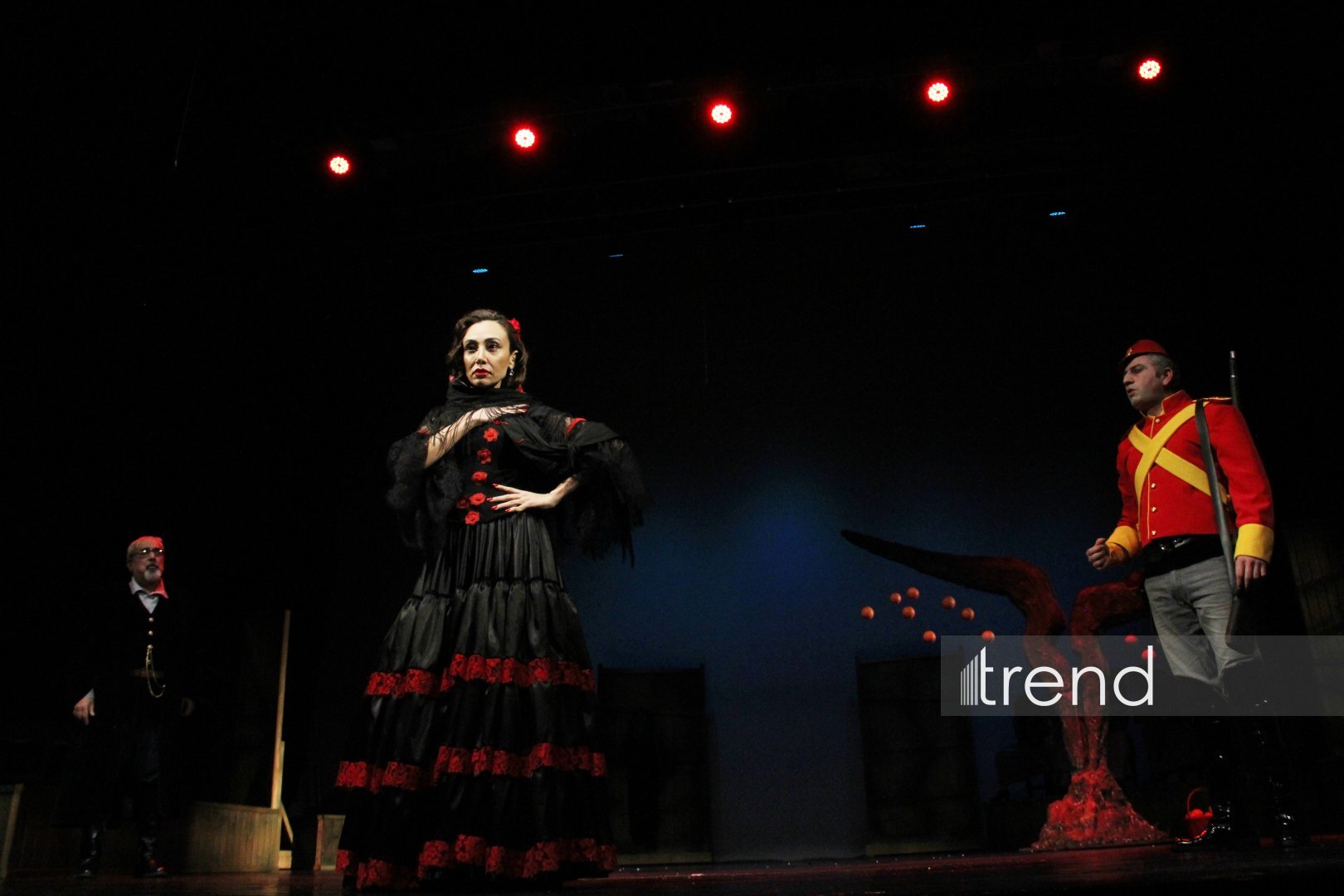 С первых минут спектакль затягивает в напряжённое пространство памяти, страсти и судьбы. В центре внимания - великолепная актёрская триада: народный артист Фуад Османов (Взрослый Хосе), заслуженная артистка Хаджар Агаева (Кармен), заслуженный артист Мурад Мамедов (Молодой Хосе), который покорили зрителей своим мастерством. Причем Фуад Османов воплотил сразу несколько образов - полковника, мужа Кармен Гарсию Кривого и тореадора. Эти перевоплощения только усиливают ощущение фатального круга, в котором застрял герой. Особо стоит отметить блистательную игру Илькина Мехтиева, исполнившего роль своеобразного Джокера - собирательного, метафорического персонажа. Он словно ведёт зрителя по лабиринтам сюжета Проспера Мериме, где разрушительная любовь военного и цыганки уже несколько веков продолжает вдохновлять композиторов, режиссёров, хореографов и художников по всему миру.