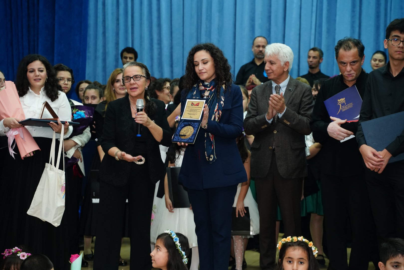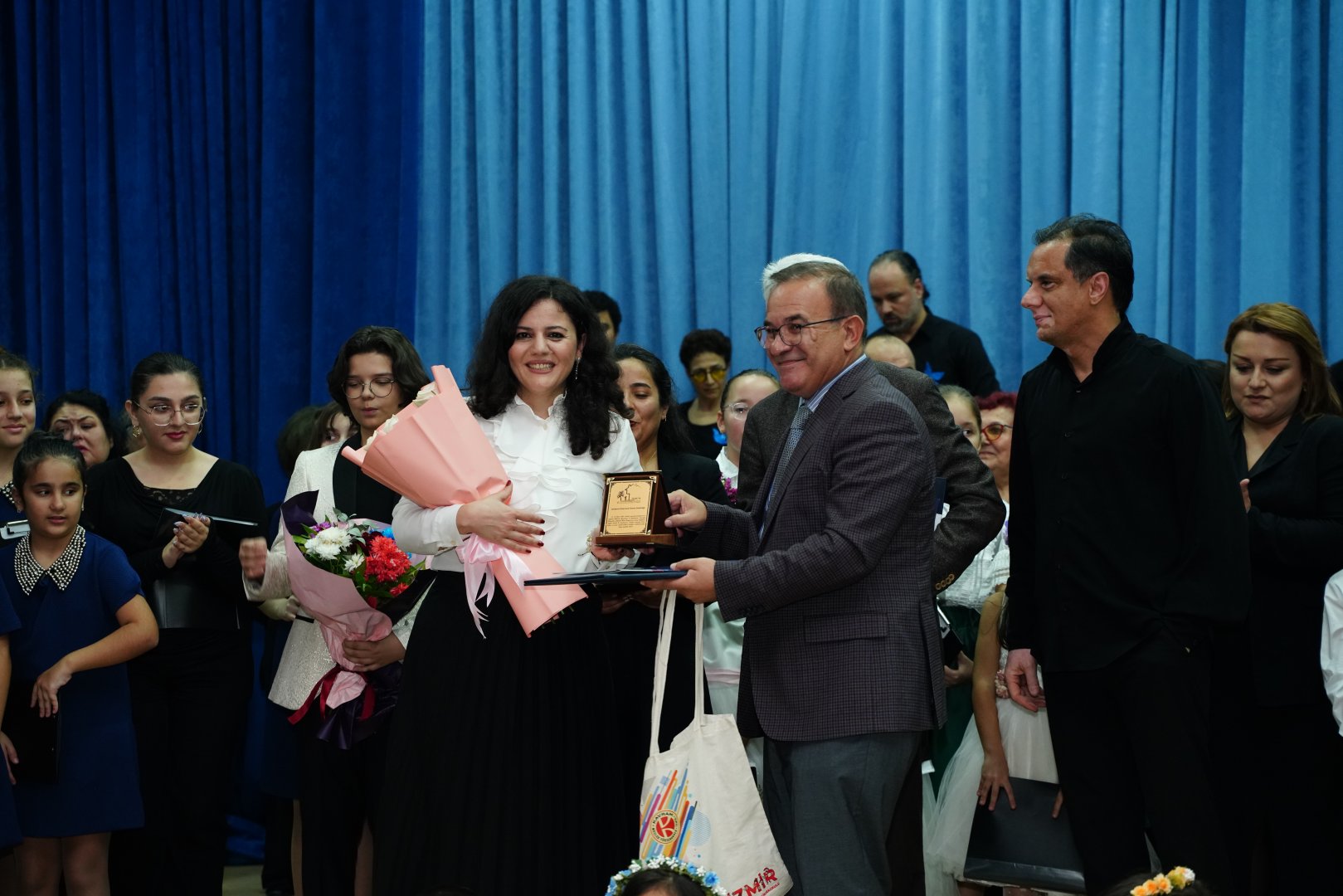 В завершение концерта от имени оргкомитета - профессор Чингиз Абдуллаев, от имени Çanakkale Onsekiz Mart Üniversitesi и Karabük Üniversitesi - профессор Ведат Чалышкан, а также от имени Хора мира - Чилер Бакыр вручили благодарственные письма и памятные подарки директору Государственной детской филармонии Саиде Тагизаде, заместителю директора и художественному руководителю детского хора Лейле Мурадзаде.