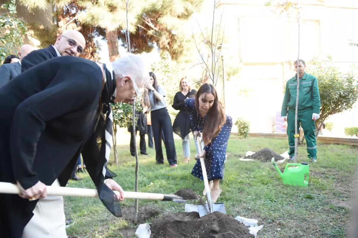 Затем при участии Лейлы Алиевой на террасе Центра было посажено фисташковое дерево.