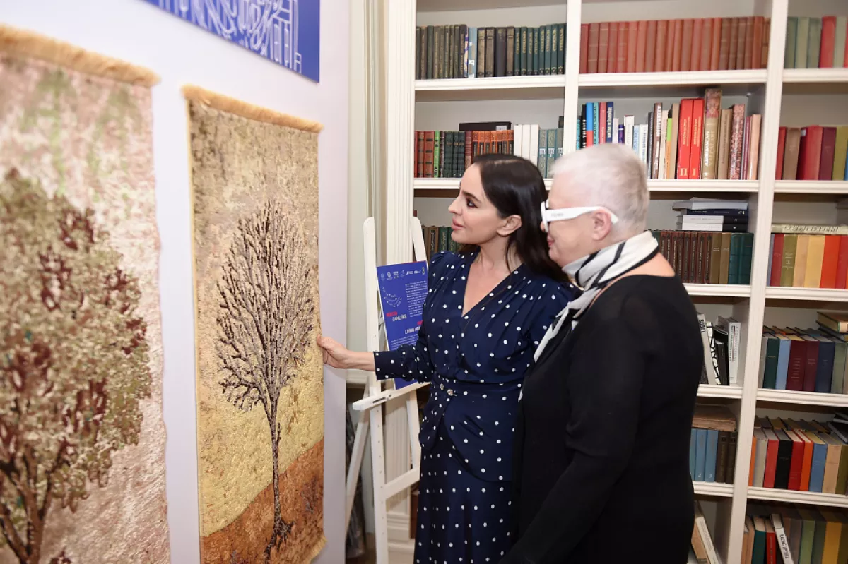 Вице-президент Фонда Гейдара Алиева, основатель и руководитель Общественного объединения IDEA Лейла Алиева ознакомилась с композицией.
