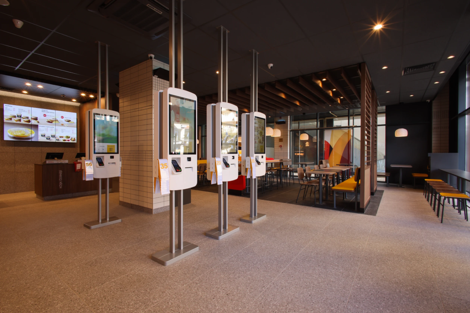 Ресторан представляет собой отдельное здание с зоной МакАвто, что позволяет гостям получать свои заказы ещё быстрее и удобнее. Интерьер оформлен в концепции A Touch of Archery, где мягкие линии сочетаются с динамичными акцентами, создавая лёгкую и уютную атмосферу.