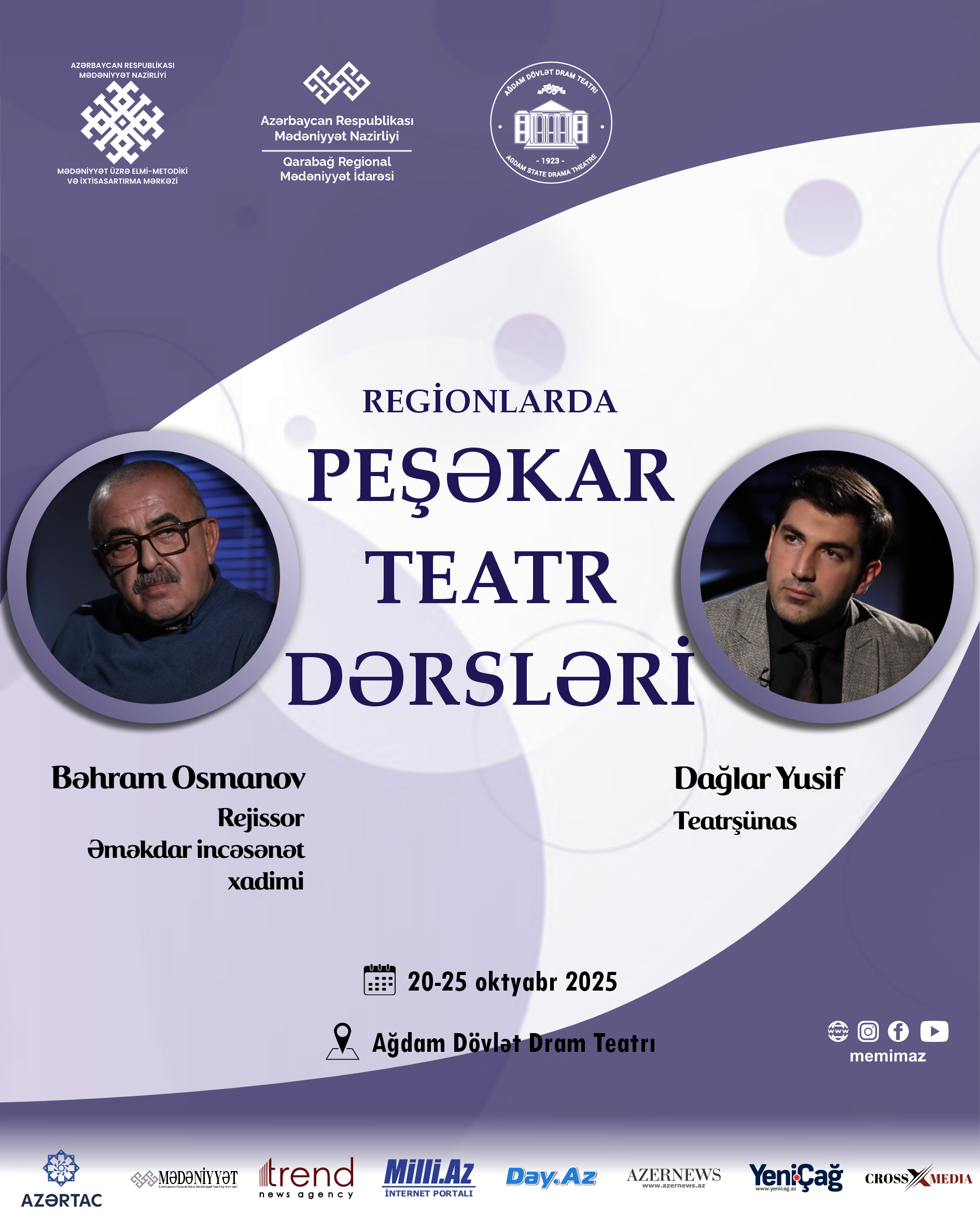 С 20 по 25 октября в Агдамском государственном драматическом театре пройдет цикл мероприятий под названием "Уроки профессионального театра в регионах".