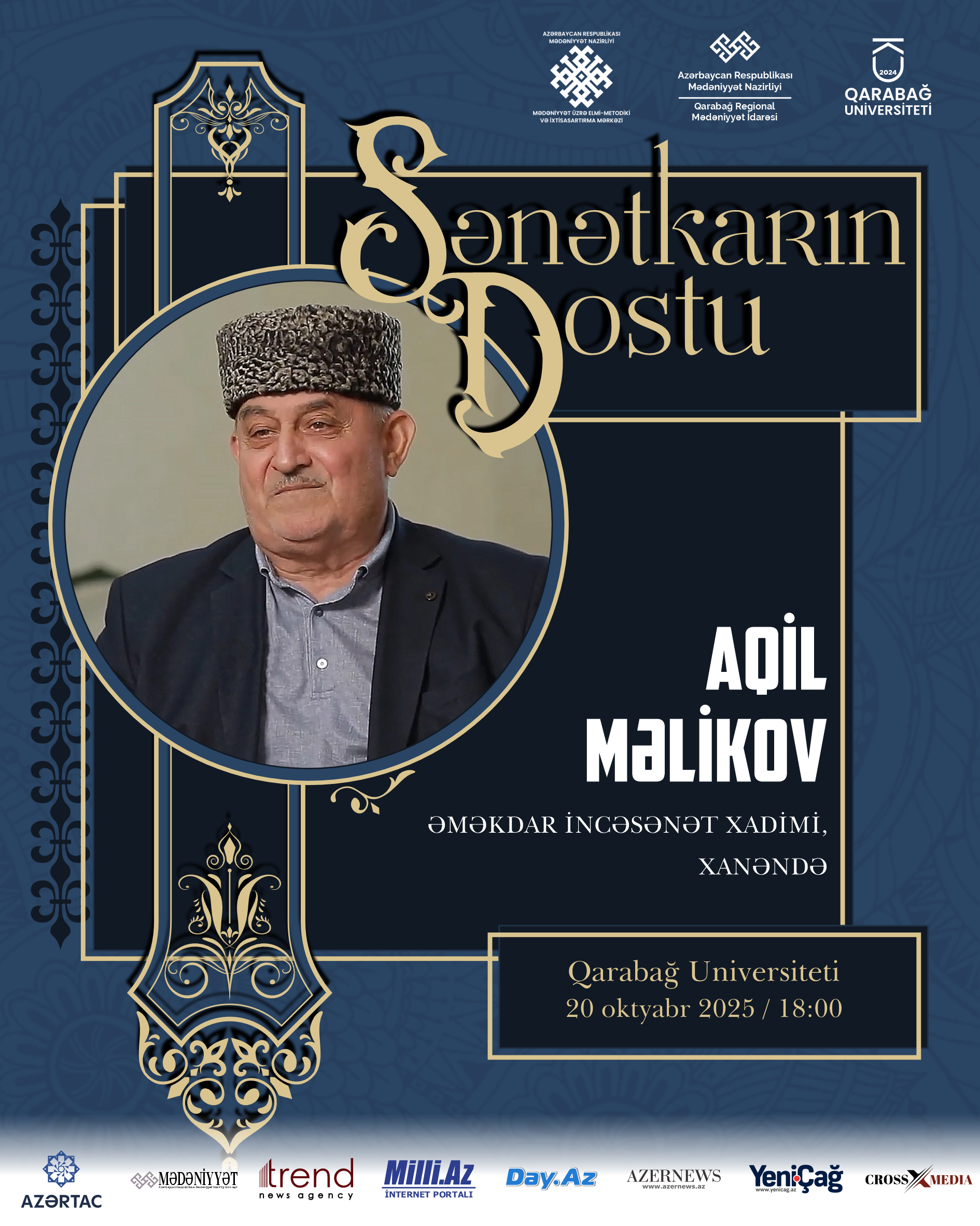 20 октября в рамках проекта "Друг мастера" (Sənətkarın dostu) MEMİM при поддержке факультета искусств Карабахского университета состоится встреча с певцом-ханенде, педагогом, заслуженным деятелем искусств Агилем Меликовым.