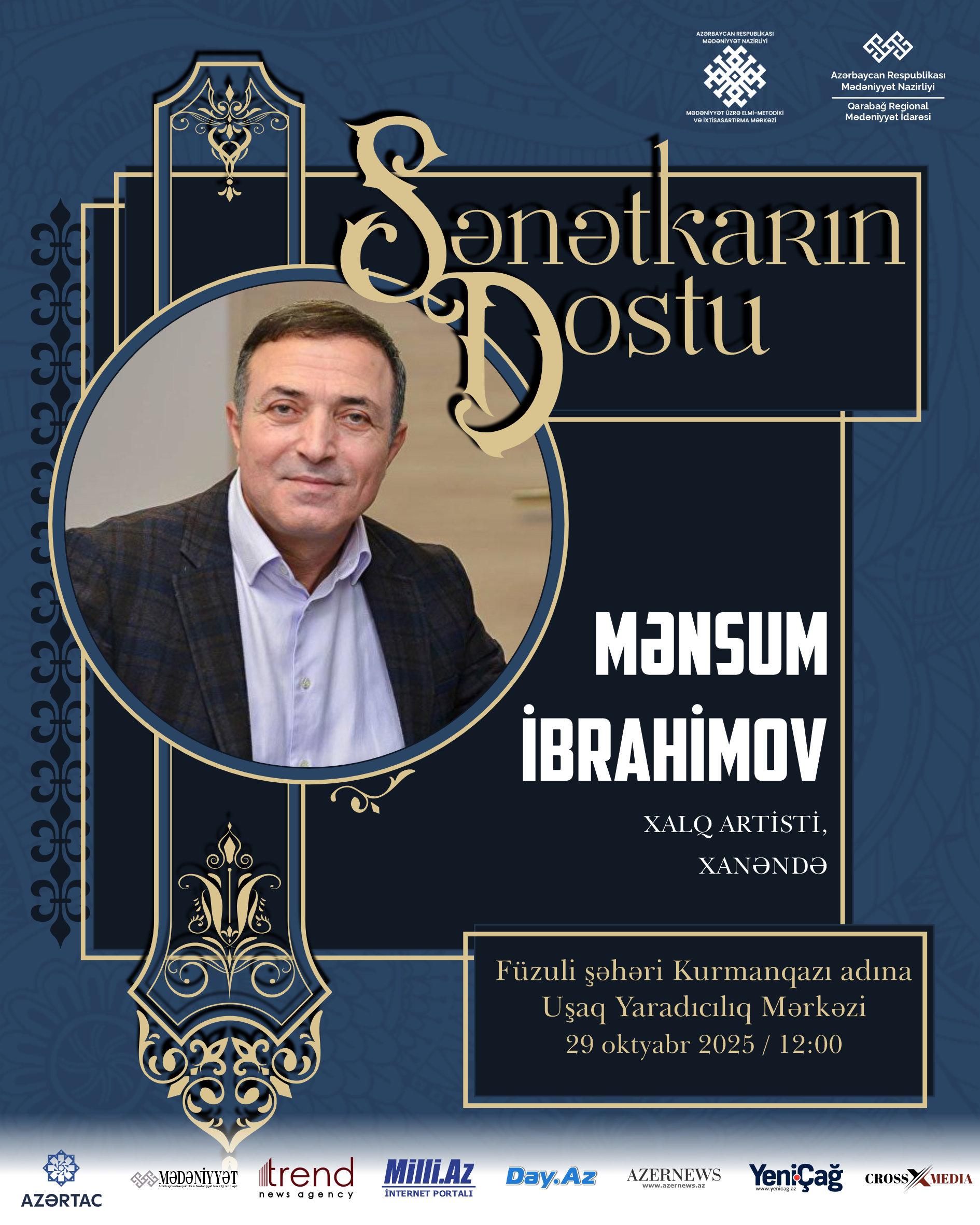 Следующая встреча в рамках "Друг мастера" состоится 29 октября в Центре детского творчества имени Курмангазы в Физули с участием народного артиста, певца, педагога Мансума Ибрагимова.