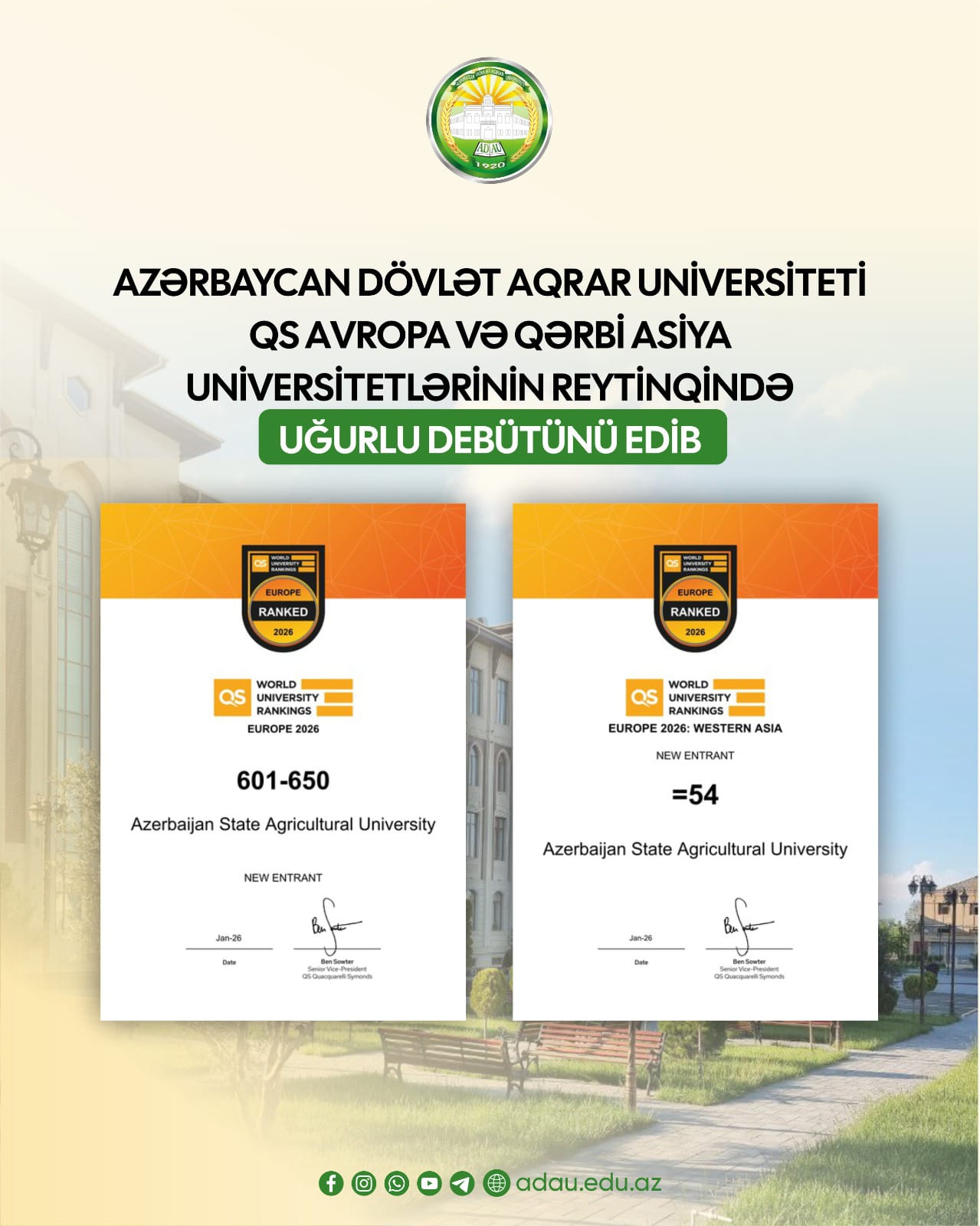 Не менее впечатляющим оказался и дебют Азербайджанского государственного аграрного университета. В рейтинге QS Europe 2026 АГАУ занял позицию в диапазоне 601-650, впервые войдя в список лучших университетов Европы. При том, что в Европе функционирует более 4000 высших учебных заведений, в рейтинг QS включены лишь 958, и АГАУ сумел обойти 37,3 процента участников, подтвердив свою высокую конкурентоспособность.