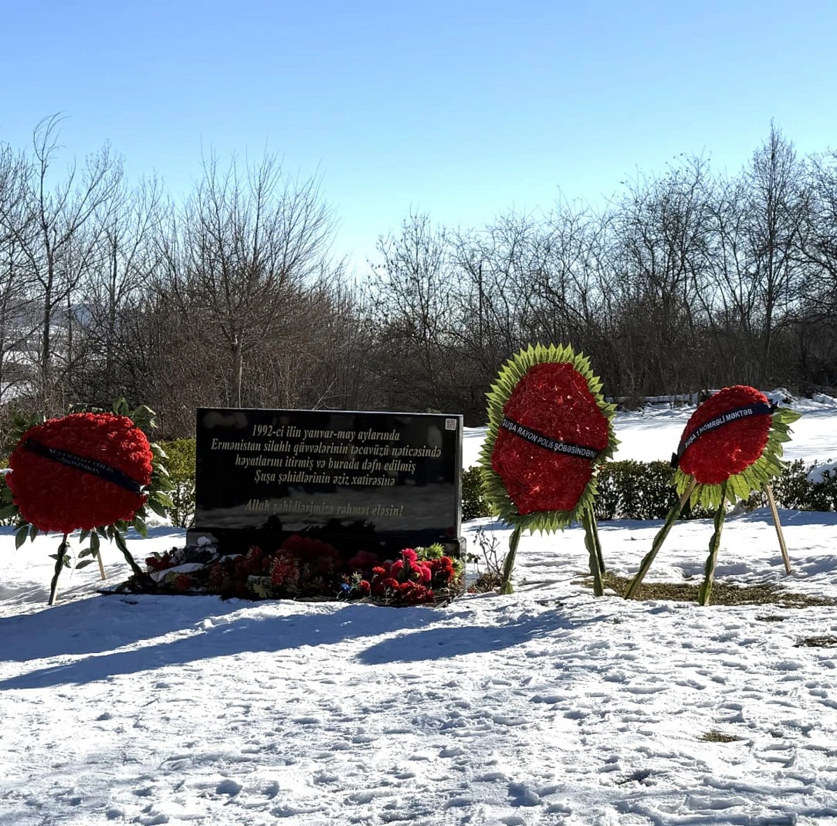На Аллее шехидов в городе Шуша состоялась церемония поминовения героев, отдавших свои жизни в операции в селе Дашалты 26 января и последующей атаке армянских вооруженных формирований 28 января на гражданский вертолет «МИ-8» в небе над Шушой.