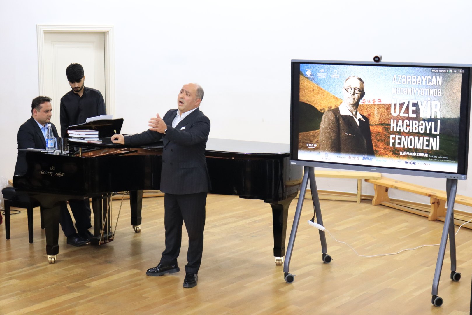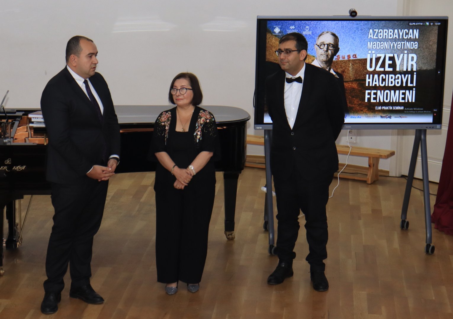 Научно-практический семинар открыли декан факультета искусств Карабахского университета, композитор Тюркер Гасымзаде и и.о. руководителя MEMIM, доктор философии по искусствоведению, доцент Вугар Гумбатов. Было отмечено, что целью семинара является просвещение молодого поколения посредством ознакомления с богатым творческим наследием основоположника современной азербайджанской профессиональной музыки Узеира Гаджибейли, Отмечалось, что музыкальное наследие великого композитора демонстрирует богатство азербайджанской культуры в мировом масштабе.