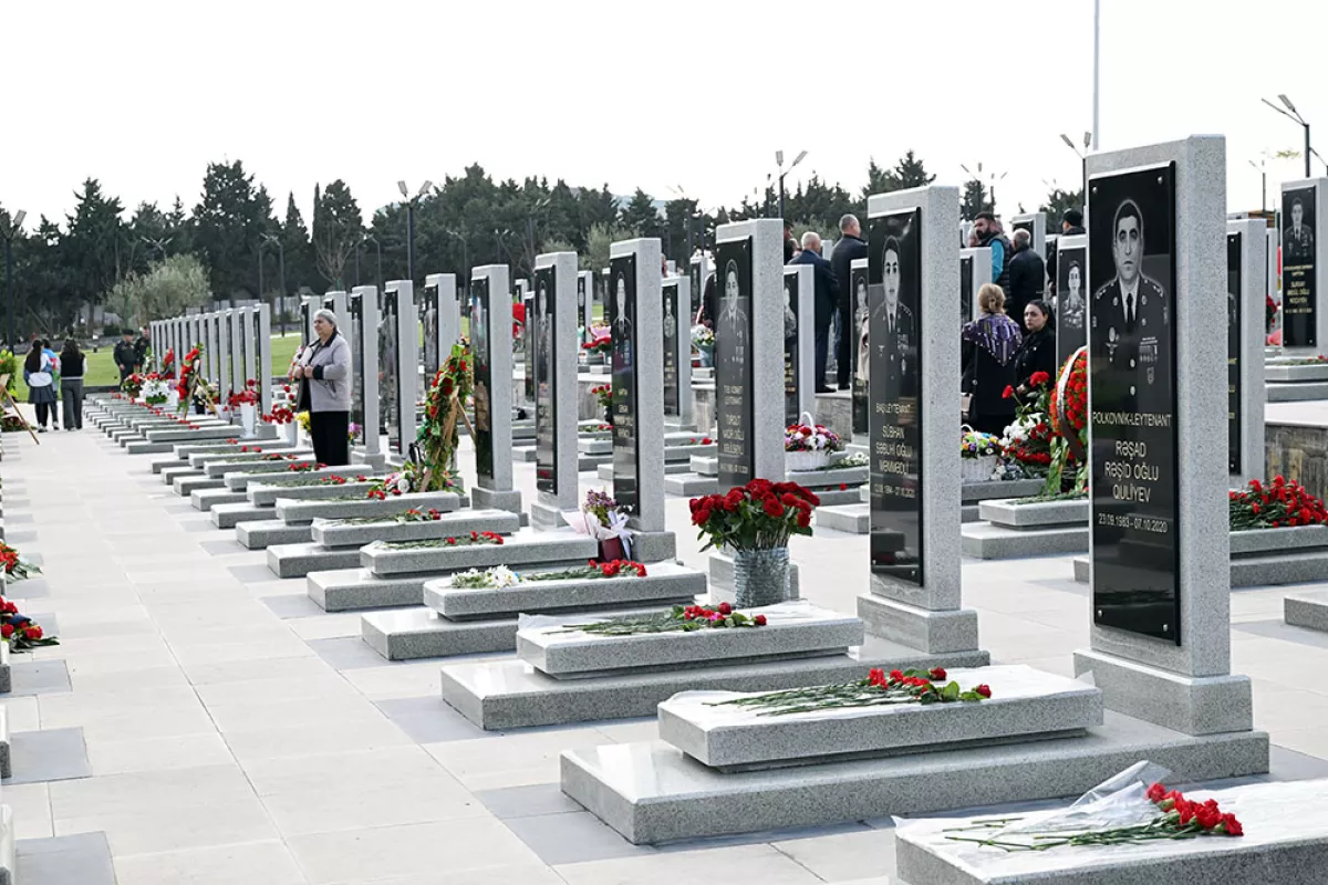 Под аккомпанемент военного оркестра здесь был исполнен Государственный гимн Азербайджанской Республики, минутой молчания была почтена память шехидов, возложены цветы на их могилы.