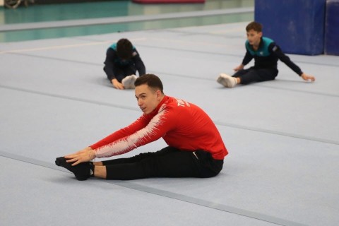 Известный турецкий гимнаст, серебряный призер чемпионата мира (параллельные брусья) и чемпион Европы в индивидуальном многоборье Ахмет Ондер проводит мастер-класс на Национальной арене гимнастики.