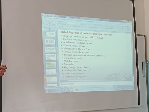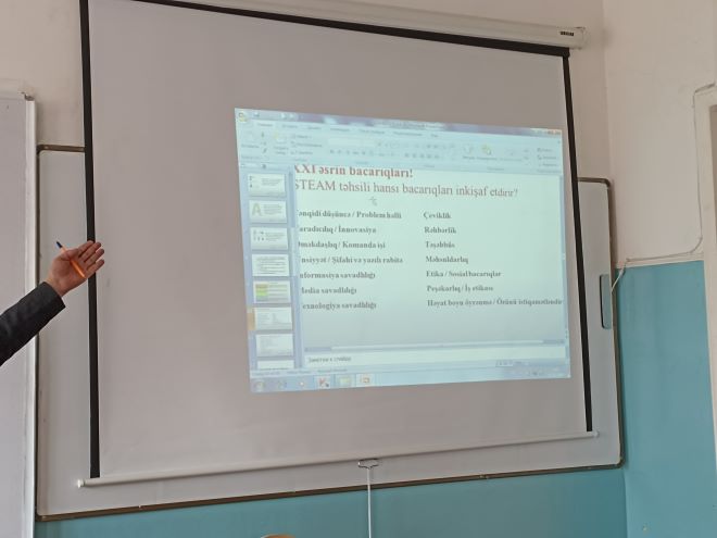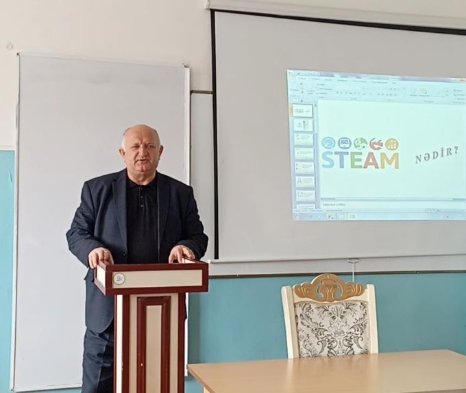 Elçin Məmmədov STEAM metodu və onun üstünlükləri haqqında ətraflı məlumat verərək bildirdi ki, məqsəd texniki və təbiət fənlərinin tədrisində ənənəvi nəzəriyyə əzbərləmə üsullarından fərqli olaraq elmi-texniki biliklərin gündəlik həyatda necə tətbiq olunmasını real həyat problemlərinin həlli vasitəsilə, “Layihə əsaslı öyrənmə” ilə təhsil alanlara aşılamaqdır.